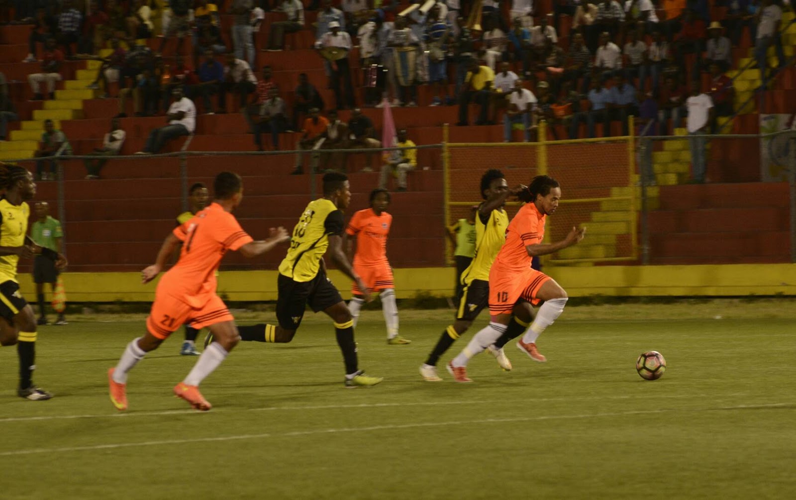 Los Cibaeños empezaron abriendo el marcador con un golazó en el minuto 12 de Woodensky Cherenfant «Babalito», de una contra-ataque la cual fue de gran desequilibrio para los Haitianos, pero con este gol el equipo sede no queria dejar el cese a gol y 11 minutos más tarde el jugador Kerlins Georges hace el gol del empate. Durante el primer tiempo todo el juego se volcó entre lados donde terminó con una poseción de balón igualada.