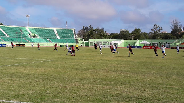 En un partido muy intenso, los dueños de casa de Cibao FC abrieron el marcador transcurridos el minuto 39 del encuentro celebrado a casa llena. Todo comenzó en un ataque encabezado por Babalito que emprendió un desplazamiento y logró colocar el balón al cetro, en el área y como venía la pelota, Domingo Peralta sacó un cañonazo que se metió al fondo de la portería. Así terminó la primera mitad.