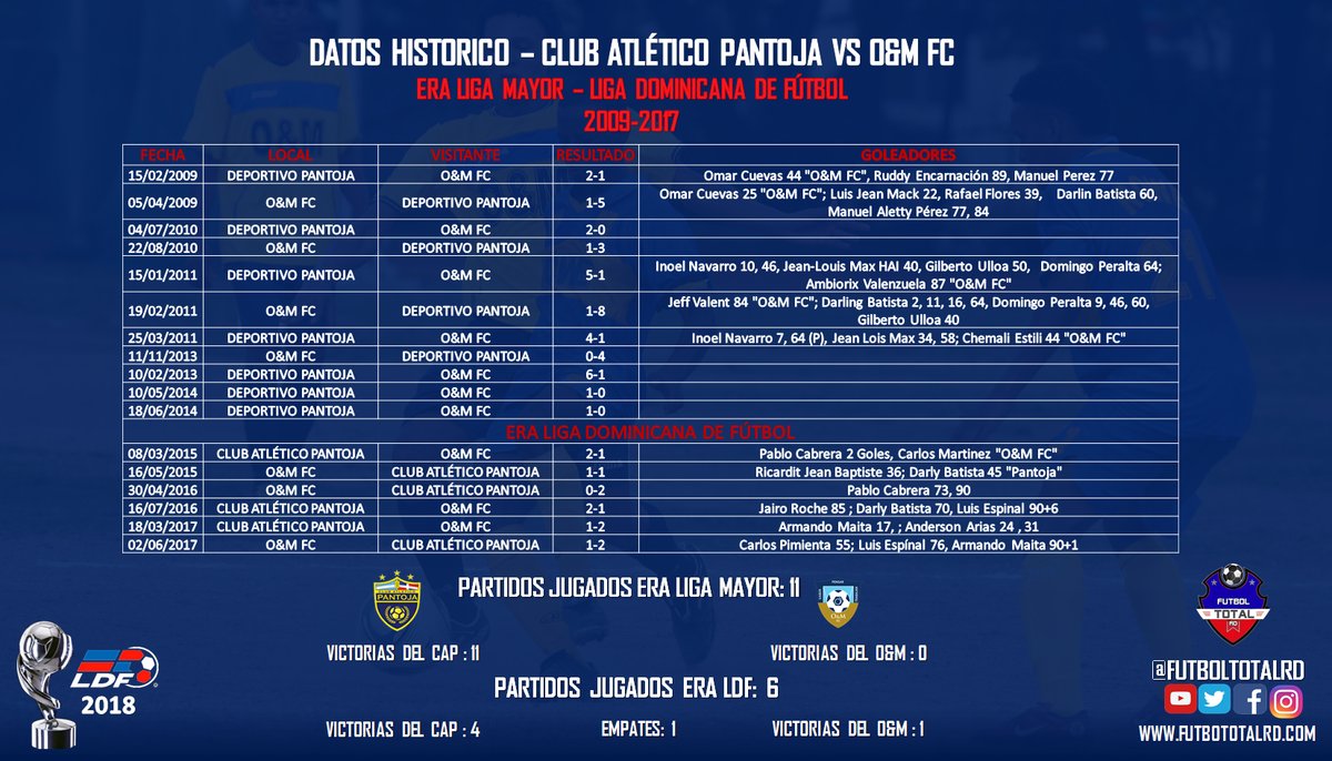 La segunda fecha del torneo de la LDF se completa con el encuentro entre el Deportivo Pantoja, actuales sub campeones y la universidad O&M. Ambos conjuntos juegan a las 4:00 de la tarde en el estadio olímpico Félix Sánchez. Este encuentro será transmitido por CDNSportMax.