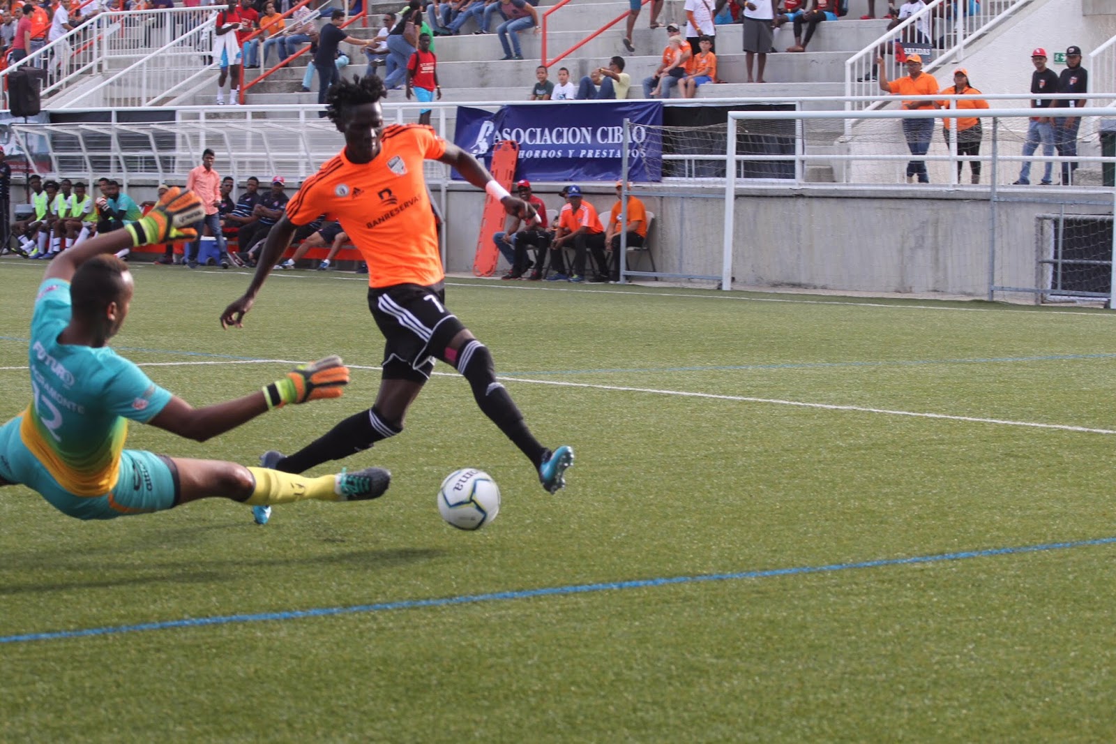 En el minuto 70, Charles Jerol Junior cobró un tiro directo desde la copa del área grande, unos 20 metros de la portería y logró enviar el balón por el ángulo derecho, poniendo delante a Cibao FC.