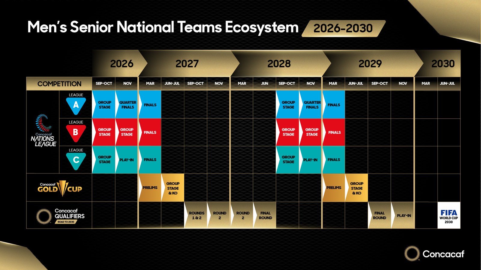 El plan «The Road to 2030» es una respuesta directa a la necesidad de profesionalizar cada ventana FIFA. Con más cupos en juego y torneos más estructurados, Concacaf busca reducir la brecha con la UEFA y la CONMEBOL.
