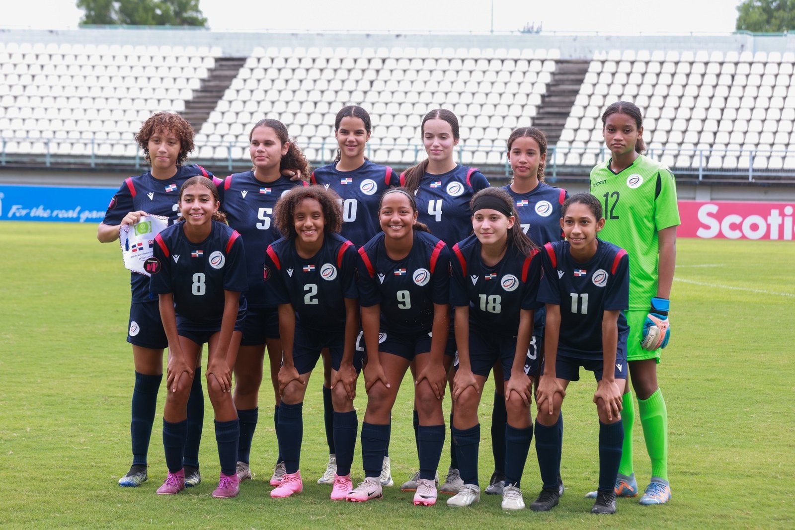 PORT OF SPAIN, TRINIDAD Y TOBAGO. AUGUST 5th: Dominican Republic Team during the League B Round One match between Dominican Republic and Cayman Islands in the Concacaf Girls Under-15 Championship, held at the Larry Gomes stadium, in Port of Spain, Trinidad y Tobago.